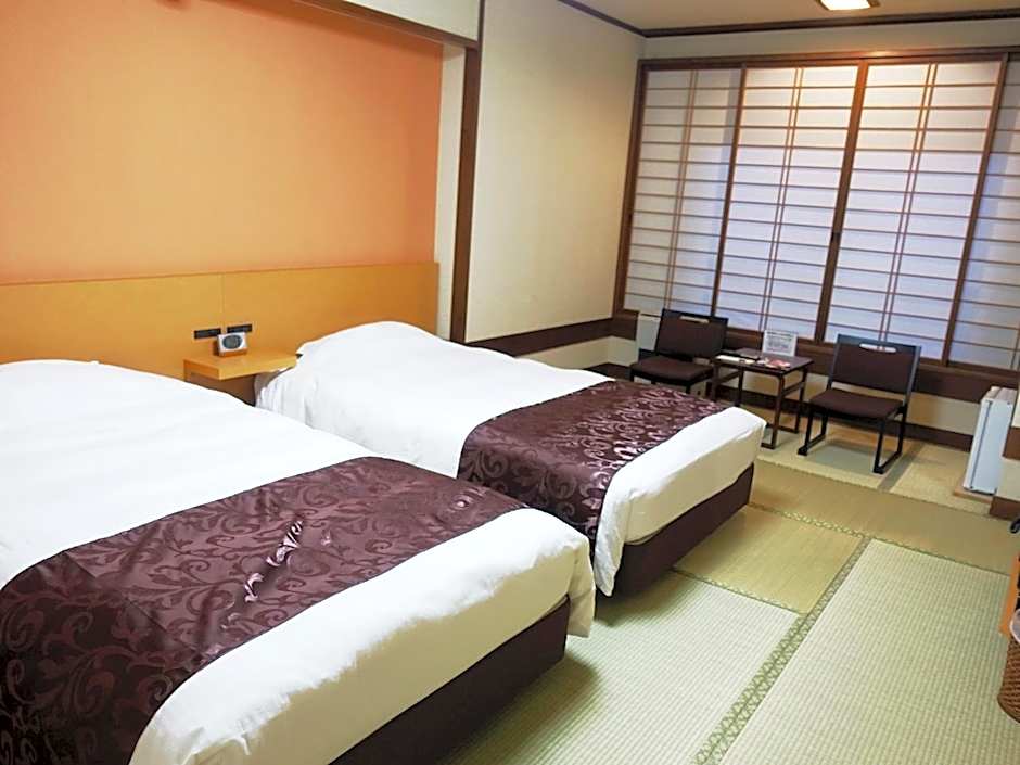 This twin room is air-conditioned and has a seating area with a flat-screen TV, a safe deposit box, an electric kettle, yukata, as well as heating. The unit has 2 beds.
